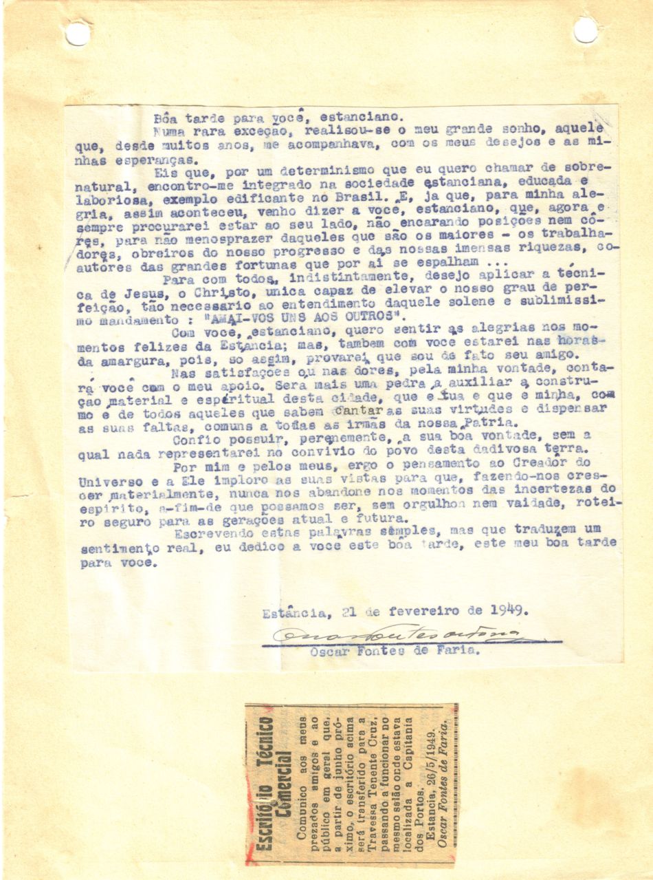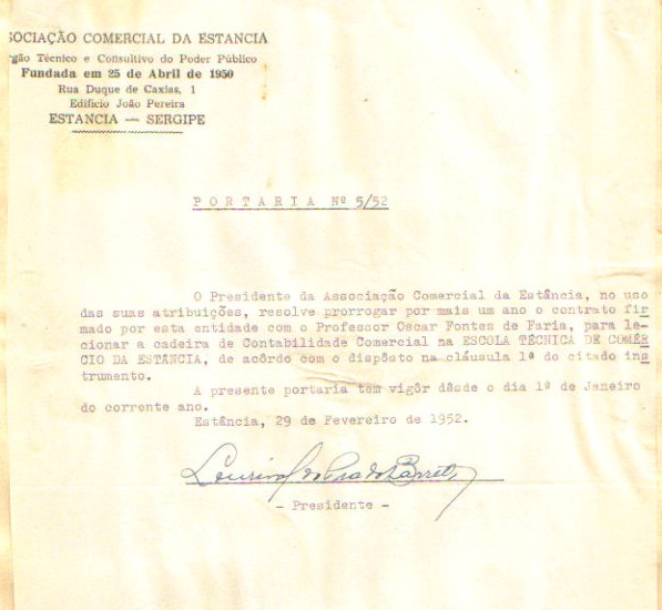 A diretoria da Ass. Com. de Estância decreta a data 03/06 "Dia do Diretor"