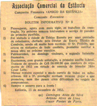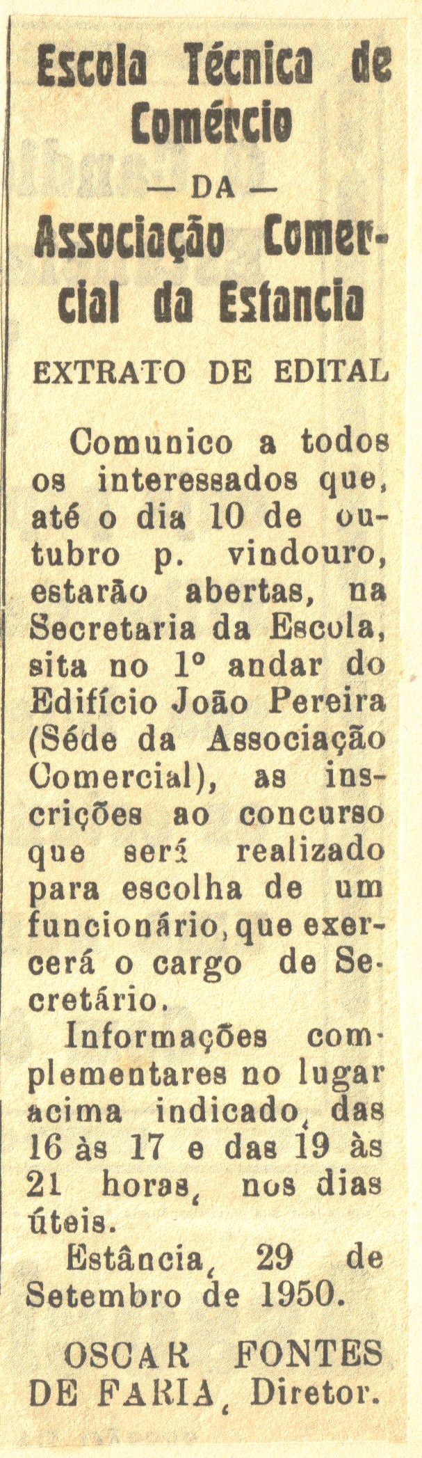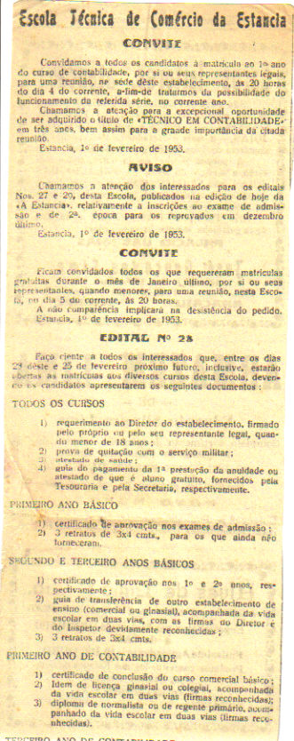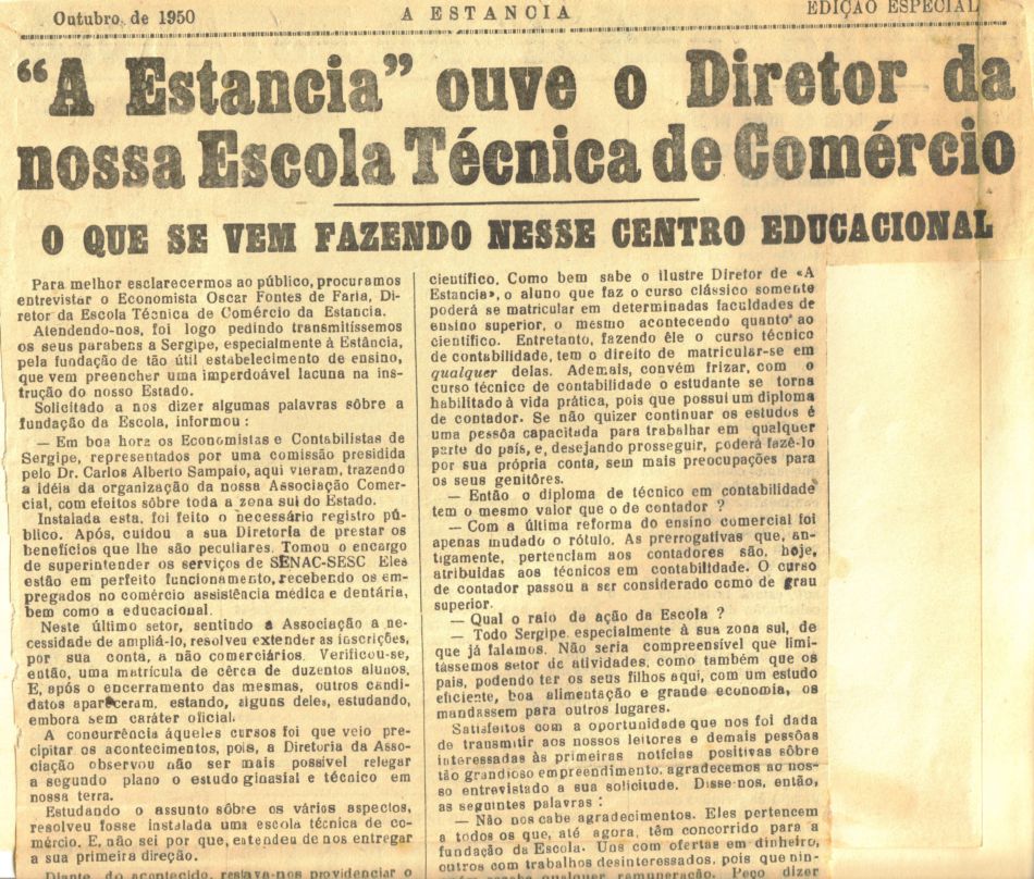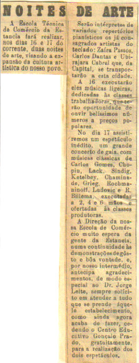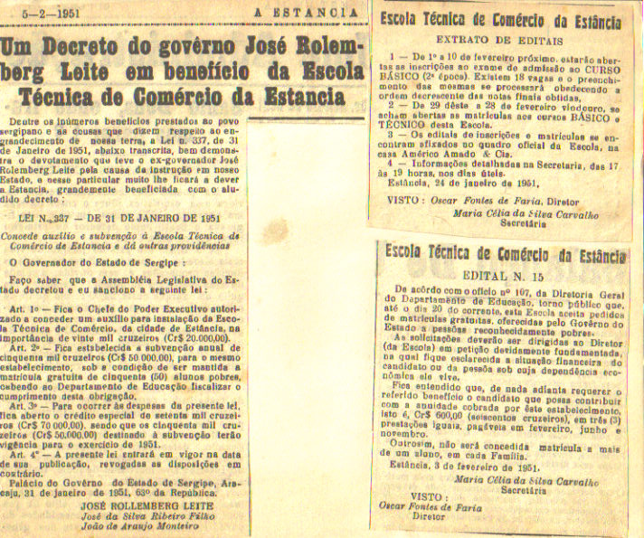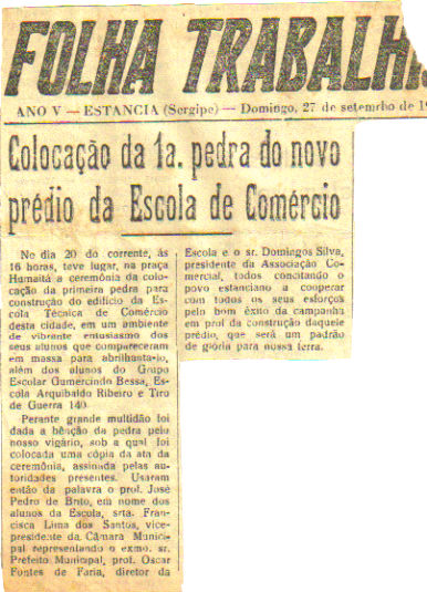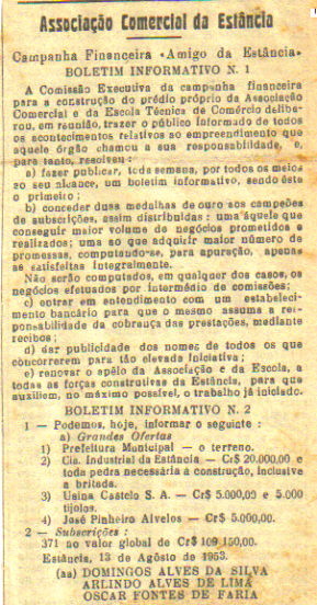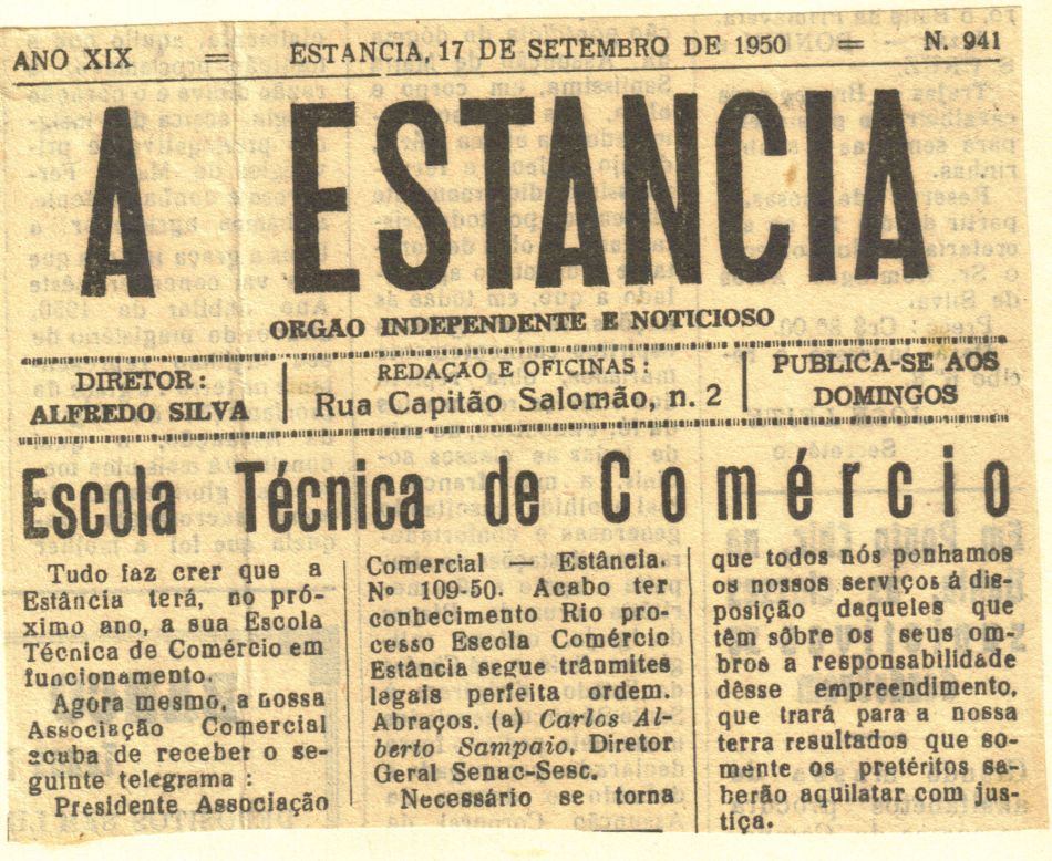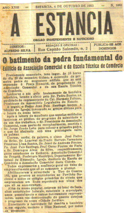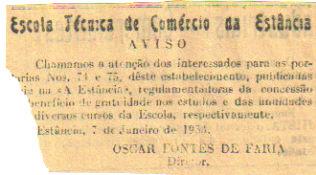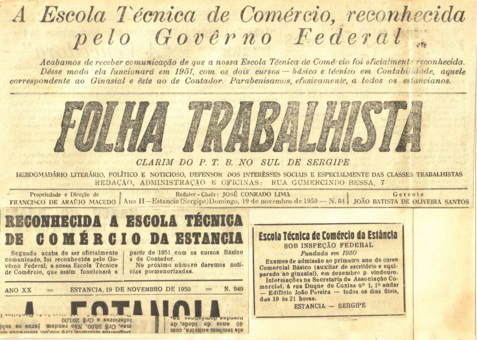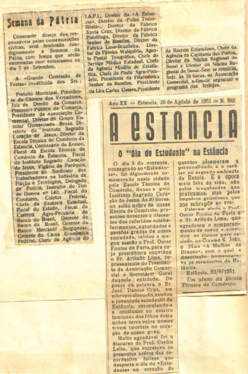 Publicações em diversos periódicos de assuntos relativos à Associação Comercial e Escola Técnica de Comércio de Estância