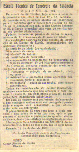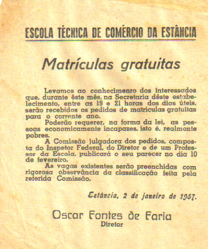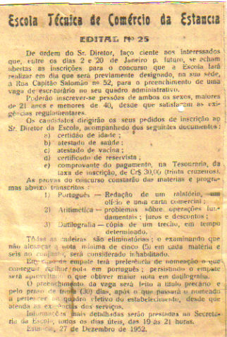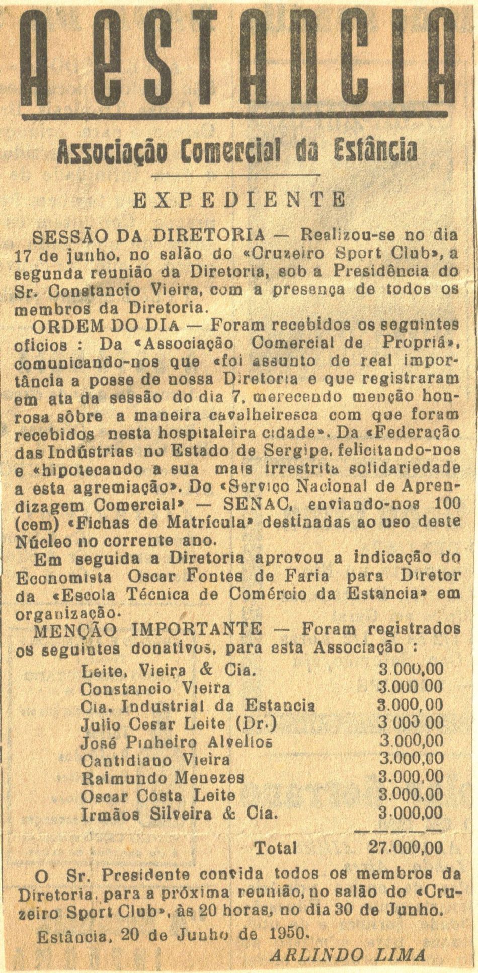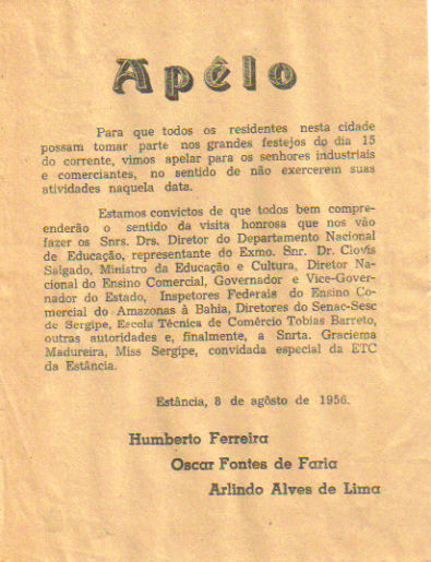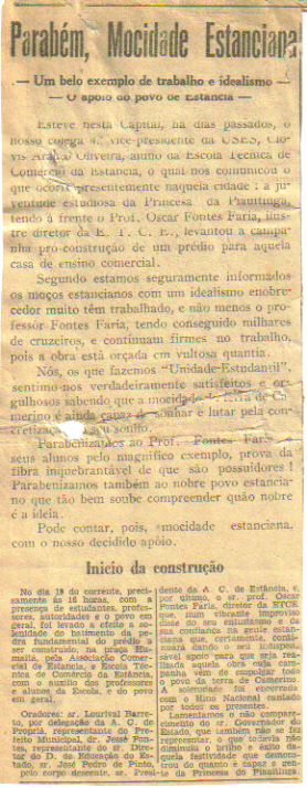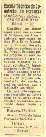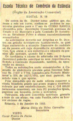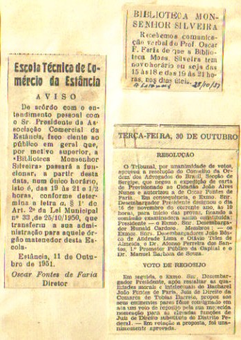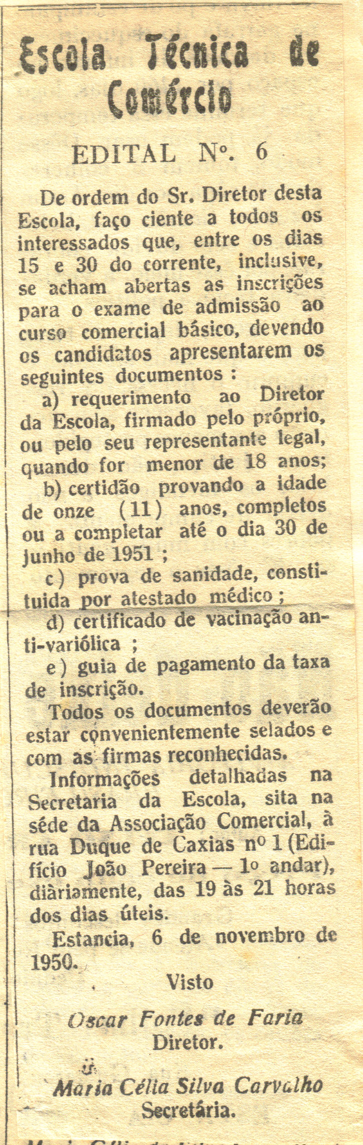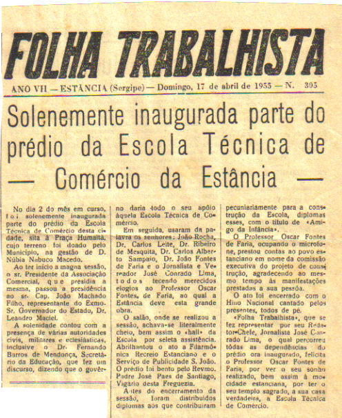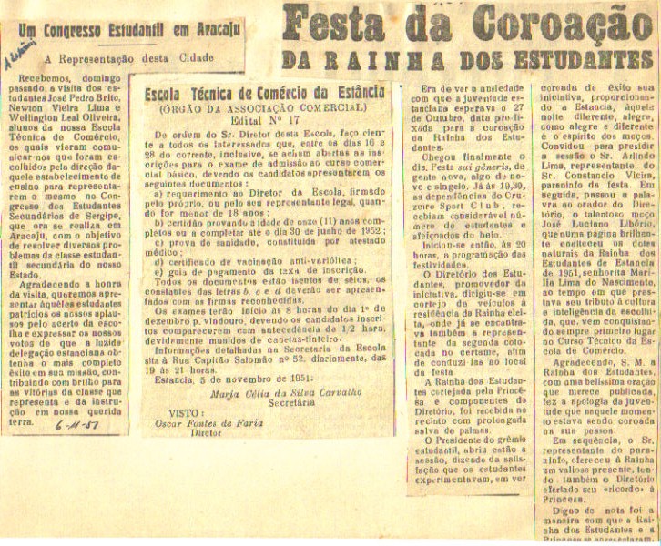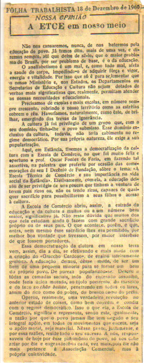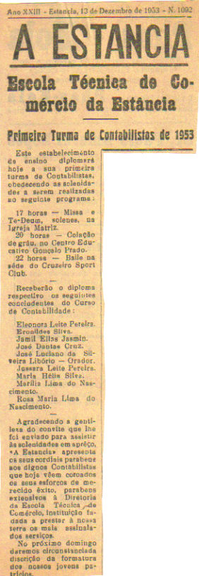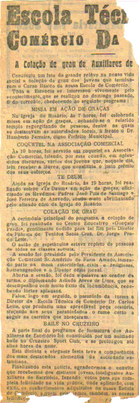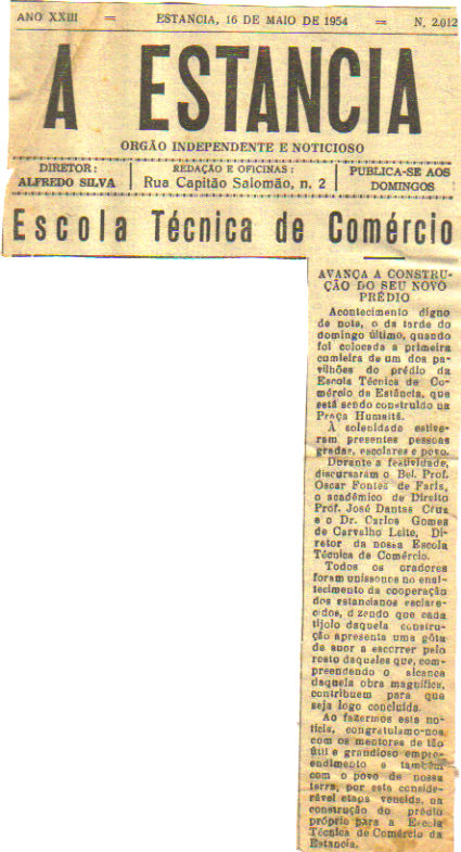 Publicações em diversos periódicos de assuntos relativos à Associação Comercial e Escola Técnica de Comércio de Estância
