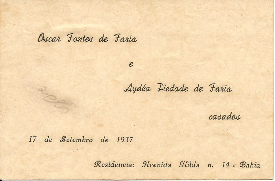 Casamento de Oscar Fontes de Faria e Aydea Piedade dos Santos