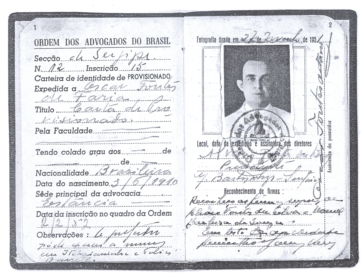 Foi também advogado provisionado da Ordem dos Advogados do Brasil (OAB) em 1952.